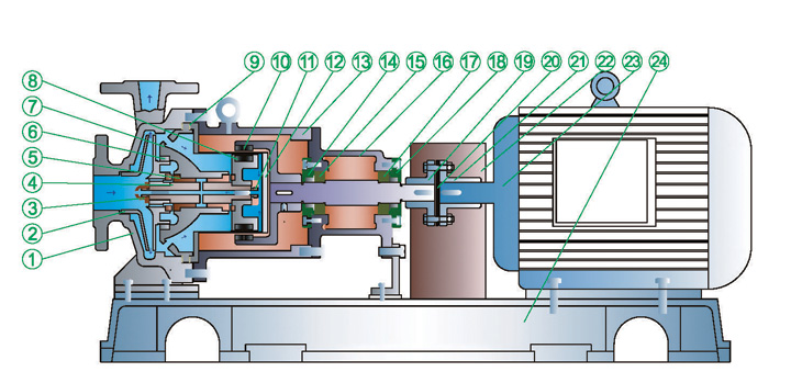 8.臥式安裝,振動小,噪音低,運行平穩(wěn),國際標準設計,可與標準化工離心泵互換,方便用戶更換和使用;
