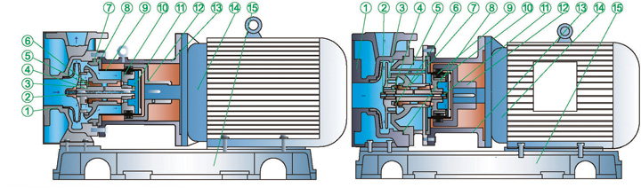 2.泵體、葉輪和泵蓋采用CFD計算機流體力學設(shè)計水力部件進行模塊設(shè)計和精密鑄造。具有流道寬、效率高、汽蝕余量性能好、徑向力小、尺寸準確、流道光潔和互換性好等特點;