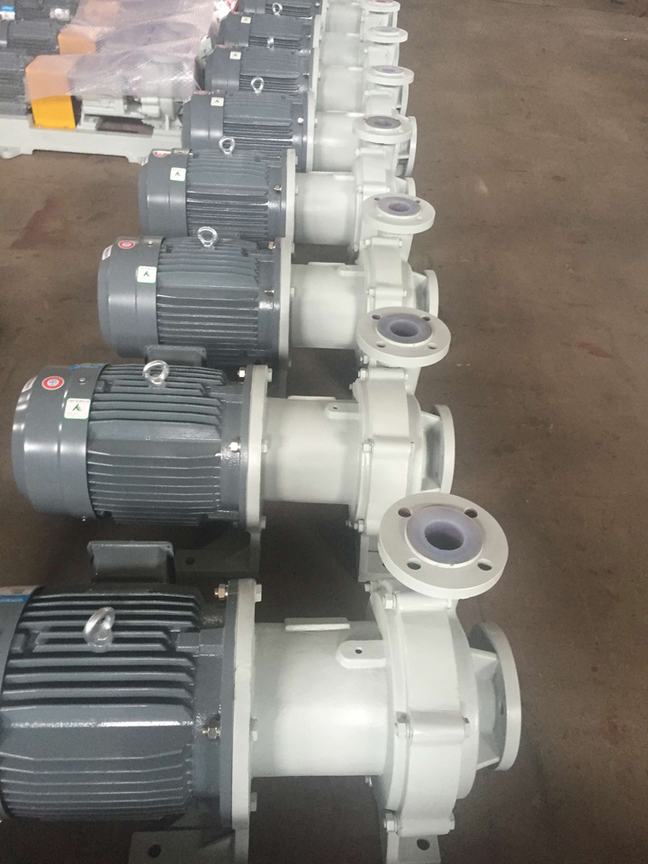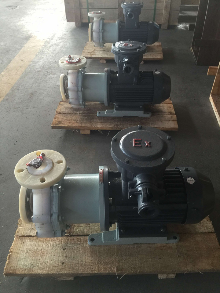 無泄漏氟塑料磁力泵(簡(jiǎn)稱:氟塑料磁力泵)是應(yīng)用現(xiàn)代磁力學(xué)原理,利用永磁體的磁力傳動(dòng)實(shí)現(xiàn)扭矩的無接觸傳遞的一種新型泵,也就是電機(jī)帶動(dòng)外轉(zhuǎn)子(即外磁鋼)總成旋轉(zhuǎn)時(shí),通過磁場(chǎng)的作用磁力線穿過隔離套帶動(dòng)內(nèi)轉(zhuǎn)子(即內(nèi)磁鋼)總成和葉輪同步旋轉(zhuǎn),過流部件全部采用氟塑料制造,可輸送任意濃(強(qiáng))度的酸、堿、氧化劑等腐蝕性介質(zhì),由于介質(zhì)封閉在靜止的隔離套內(nèi),從而達(dá)到無泄漏抽送介質(zhì)的目的,****解決了機(jī)械傳動(dòng)泵的軸封泄漏,而設(shè)計(jì)的全密封、無泄漏、無污染、耐強(qiáng)酸、高效節(jié)能的新型無泄漏耐酸泵,性能達(dá)到國(guó)際標(biāo)準(zhǔn)、可替代價(jià)格昂貴不銹鋼,特殊合金材料、進(jìn)口的化工泵。