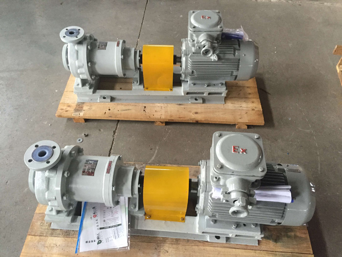 無泄漏襯氟磁力泵(簡(jiǎn)稱:襯氟磁力泵)是應(yīng)用現(xiàn)代磁力學(xué)原理,利用永磁體的磁力傳動(dòng)實(shí)現(xiàn)扭矩的無接觸傳遞的一種新型泵,也就是電機(jī)帶動(dòng)外轉(zhuǎn)子(即外磁鋼)總成旋轉(zhuǎn)時(shí),通過磁場(chǎng)的作用磁力線穿過隔離套帶動(dòng)內(nèi)轉(zhuǎn)子(即內(nèi)磁鋼)總成和葉輪同步旋轉(zhuǎn),過流部件全部采用氟塑料制造,可輸送任意濃(強(qiáng))度的酸、堿、氧化劑等腐蝕性介質(zhì),隔離套采用特殊材料制造具有高強(qiáng)度的力學(xué)性能,消除了磁力泵存在的磁渦流現(xiàn)象,由于介質(zhì)封閉在靜止的隔離套內(nèi),從而達(dá)到無泄漏抽送介質(zhì)的目的,****解決了機(jī)械傳動(dòng)泵的軸封泄漏,而設(shè)計(jì)的全密封、無泄漏、無污染、耐強(qiáng)酸、高效節(jié)能的新型耐酸泵,性能可達(dá)到國(guó)際標(biāo)準(zhǔn)、可替代價(jià)格昂貴不銹鋼,特殊合金材料、進(jìn)口的化工泵。